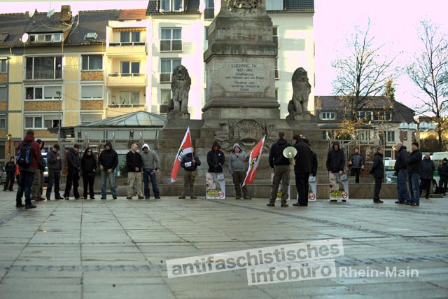 Die Kundgebung in Ludwigshafen, die um 12 Uhr in einer Nebenstraße hinter dem Bahnhof begann, dauerte eine knappe halbe Stunde. Anschließend ging es für eine ähnlich kurze Kundgebung weiter nach Frankenthal. In Worms durften die Nazis einen kurzen Aufmarsch zum Kundgebungsort auf dem Ludwigsplatz durchführen. Um 5 Uhr war dann auch diese dritte Kundgebung vorbei. Als Redner traten unter anderem Mario Matthes und Jan Jaeschke auf.