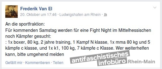 Ein Neonazi aus Ludwigshafen suchte wenige Tage vor der Veranstaltung noch Boxer für eine „Fight Night in Mittelhessen“
